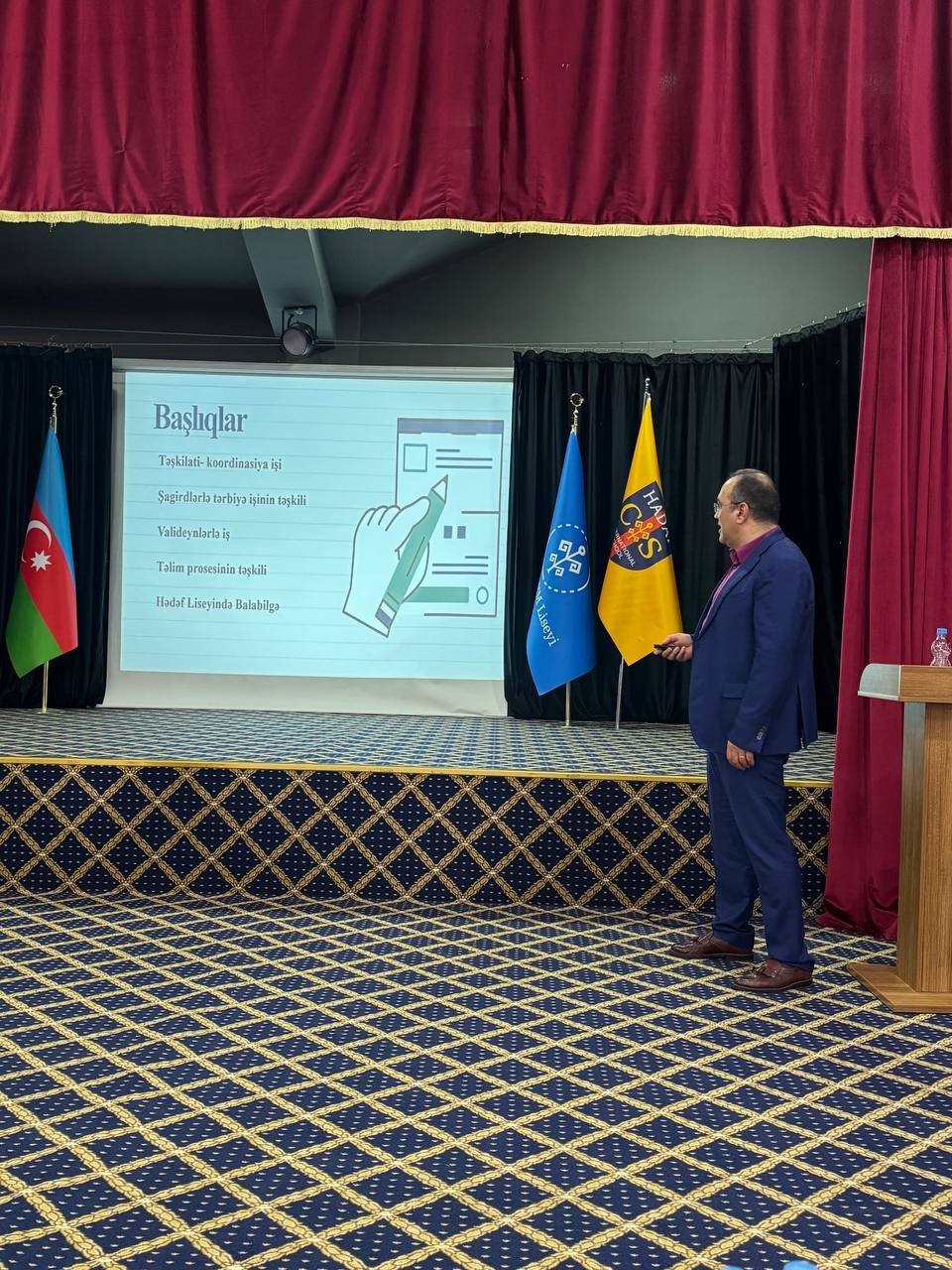 Fənn müəllimləri ilə də görüş keçirildi və Vəli müəllim KİQ 1 imtahanı nəticələrinin analizi, BİQ 1 imtahanına hazırlıq, akademik nəticələrin inkişafı üçün görüləcək işlər, təlim-tərbiyə işinin təşkili üzrə nəticələr və göstəricilər və cari məsələlərlə bağlı danışdı.